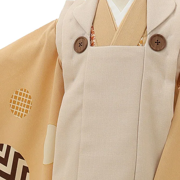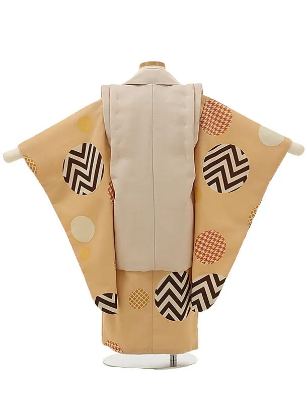 七五三(3歳男児被布)W065ライトベージュxキャメルベージュ変わりドット
