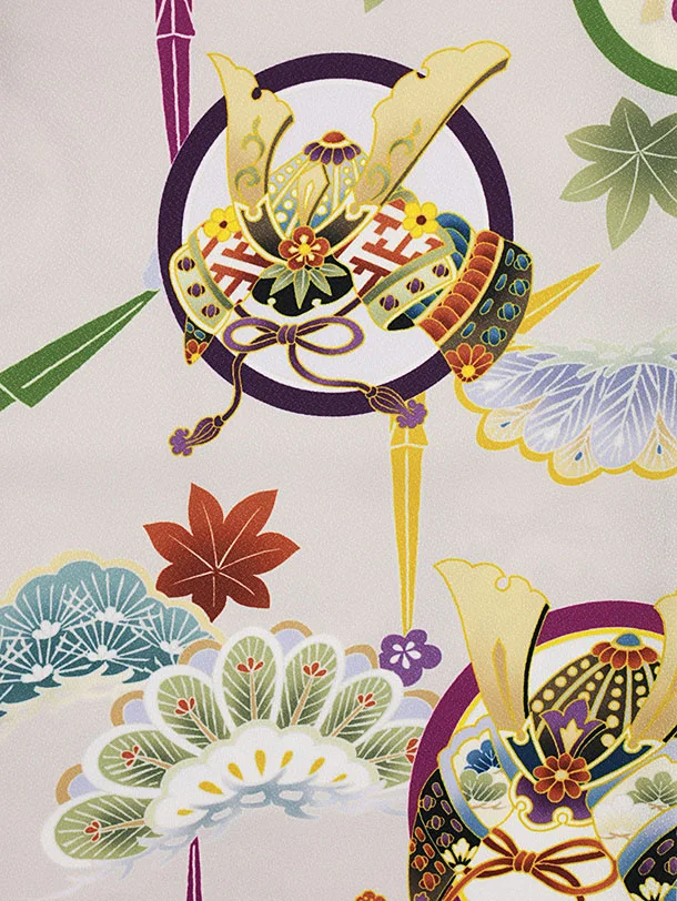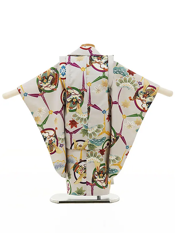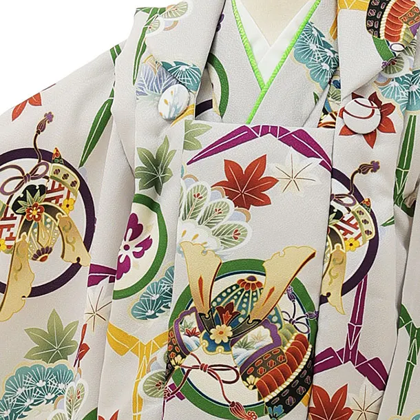 七五三レンタル(3歳男児被布)W075グレー松に丸紋兜