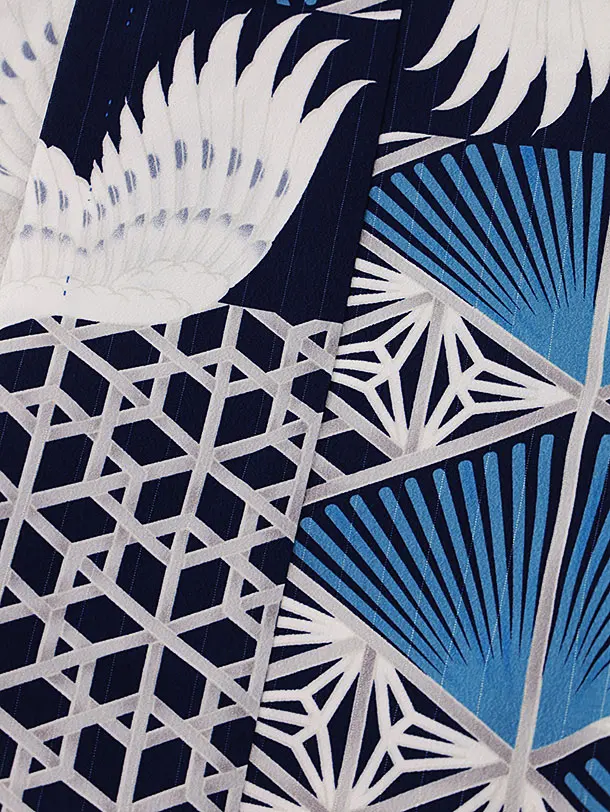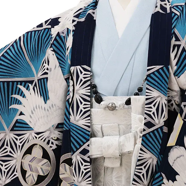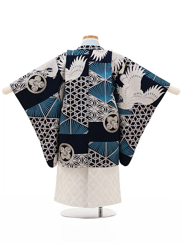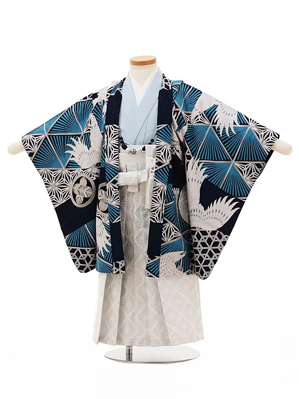 かんたん七五三(3歳男袴)W084JAPANSTYLE紺ブルー組子紋様鷹x白
