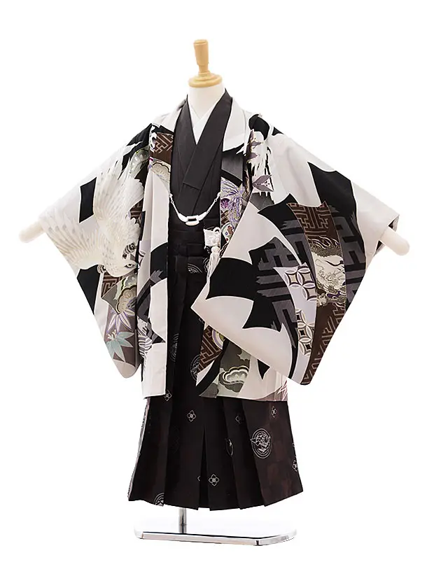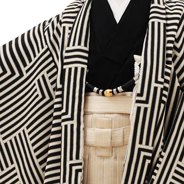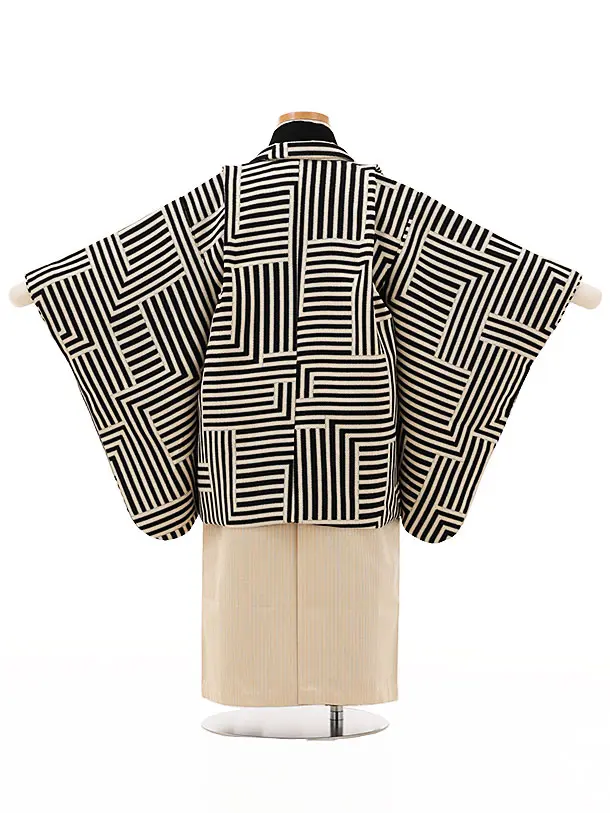かんたん七五三レンタル(3歳男袴)W086黒白変わりストライプxアイボリー