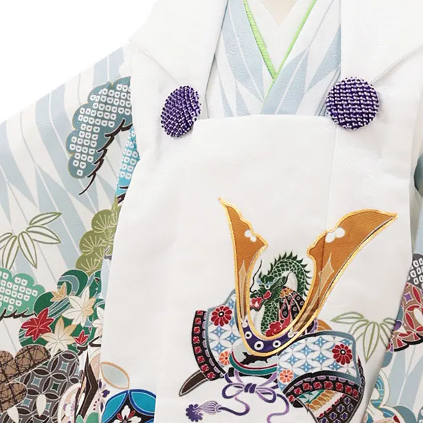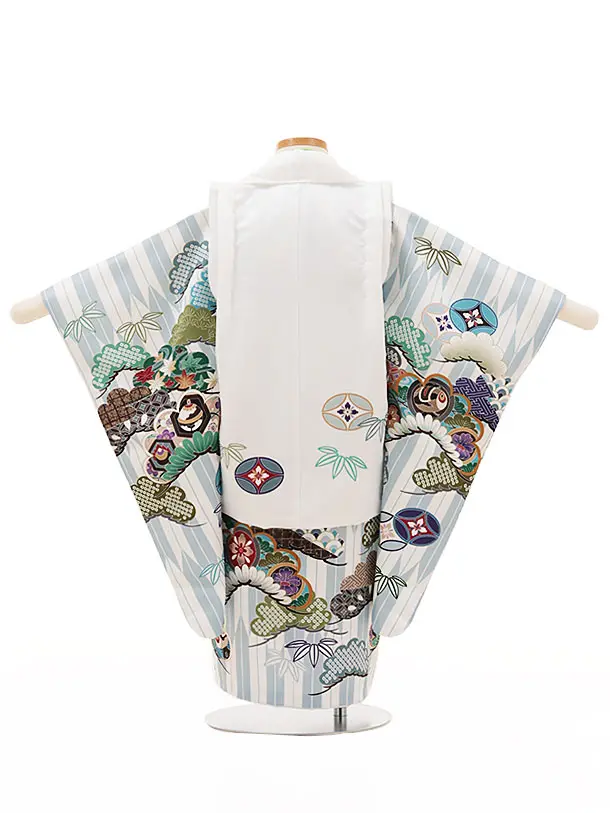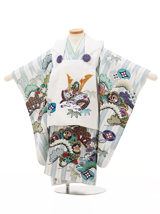 七五三レンタル(3歳男児被布)W087白兜x白グレー矢羽根吉祥文様