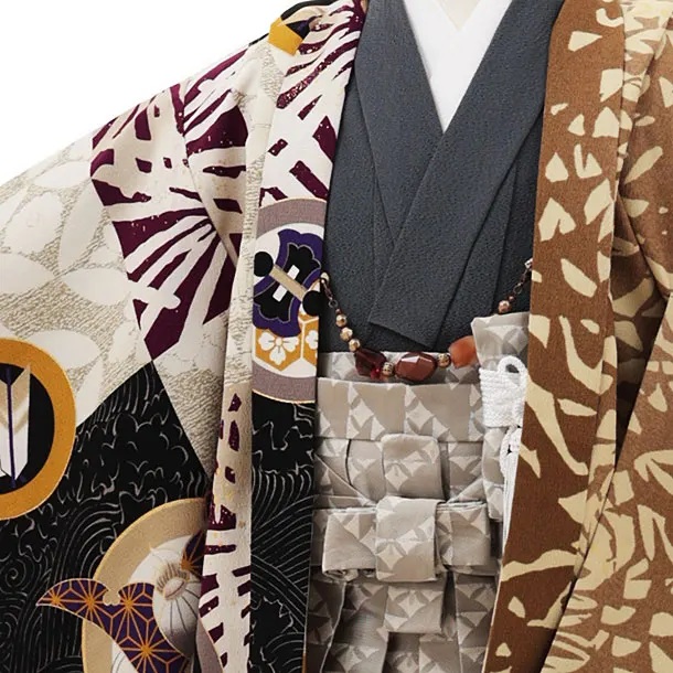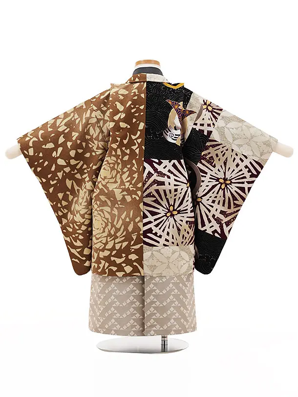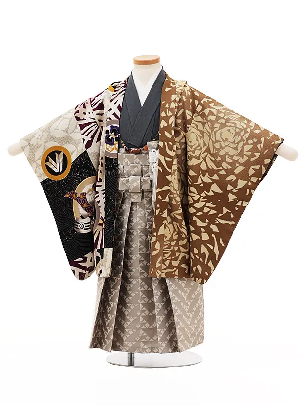 七五三レンタル(3歳男袴)W094UNSODO片身替り茶xグレー