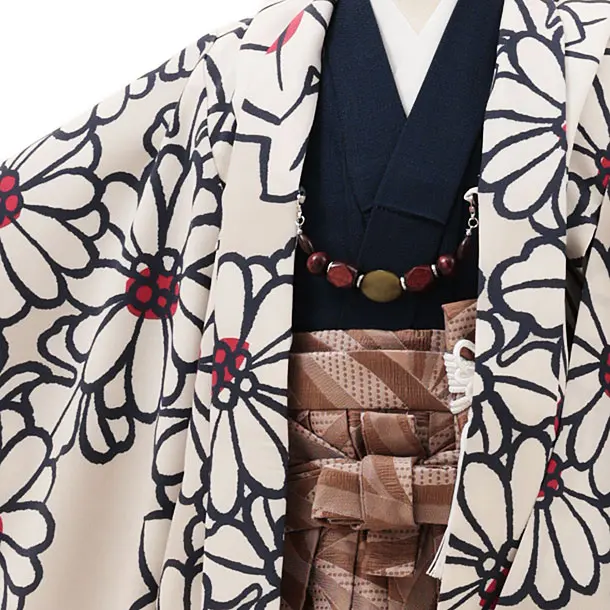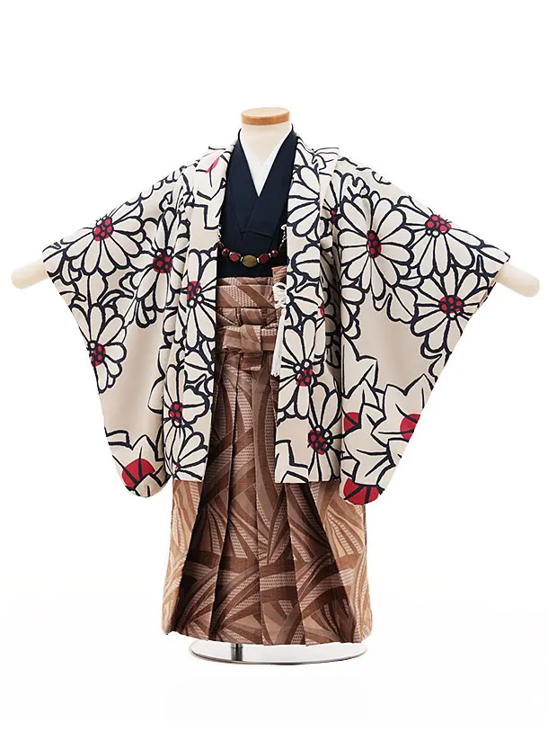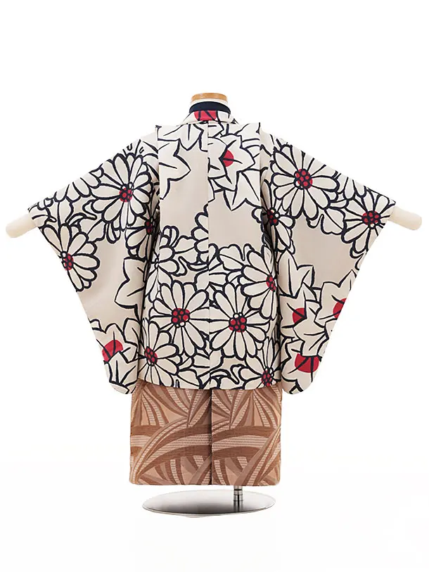 七五三レンタル(3歳男袴)W095グレージュ花楓x茶