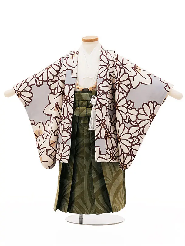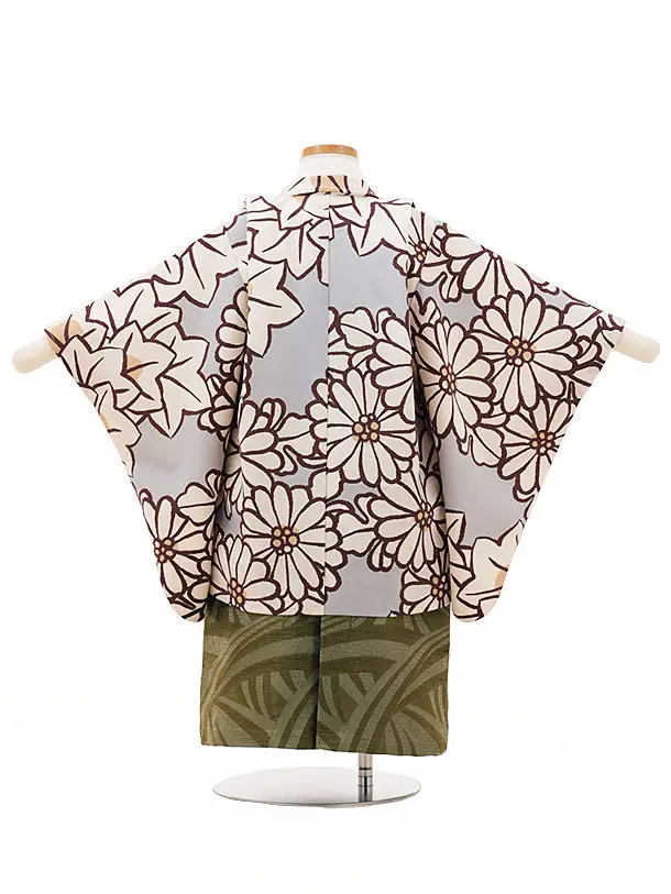 七五三レンタル(3歳男袴)W096ブルーグレー花楓xカーキ