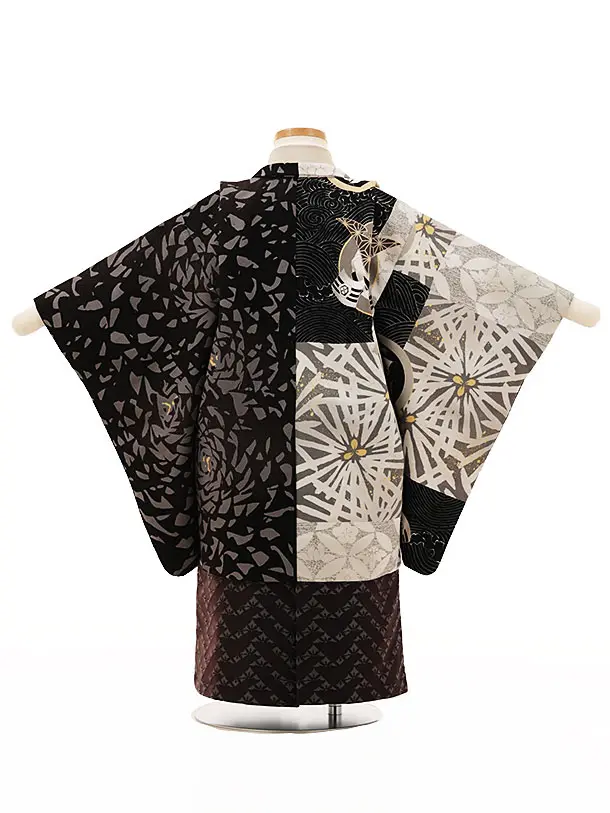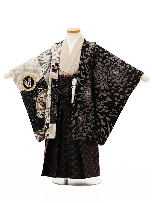 七五三レンタル(3歳男袴)W108UNSODO片身替わり黒x茶