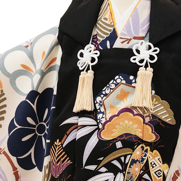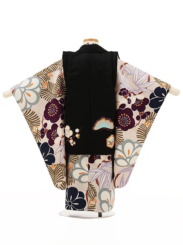 七五三(3歳男児被布)W112黒xニュアンスグレー松竹梅