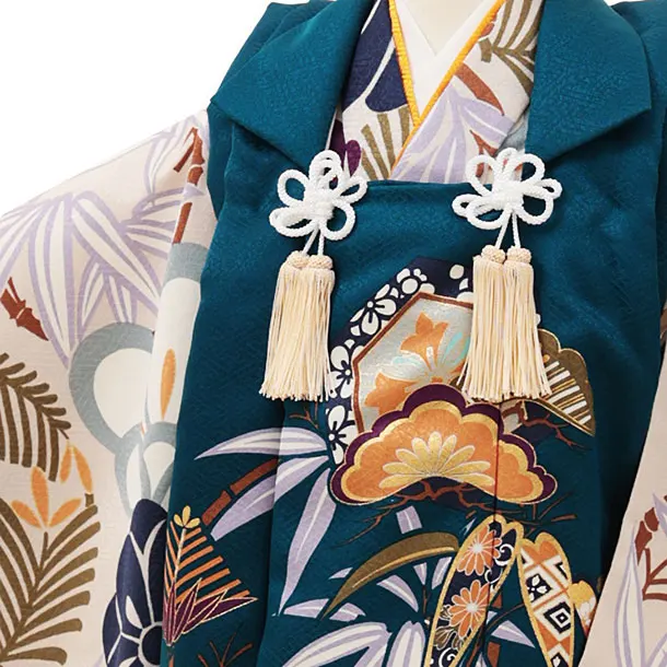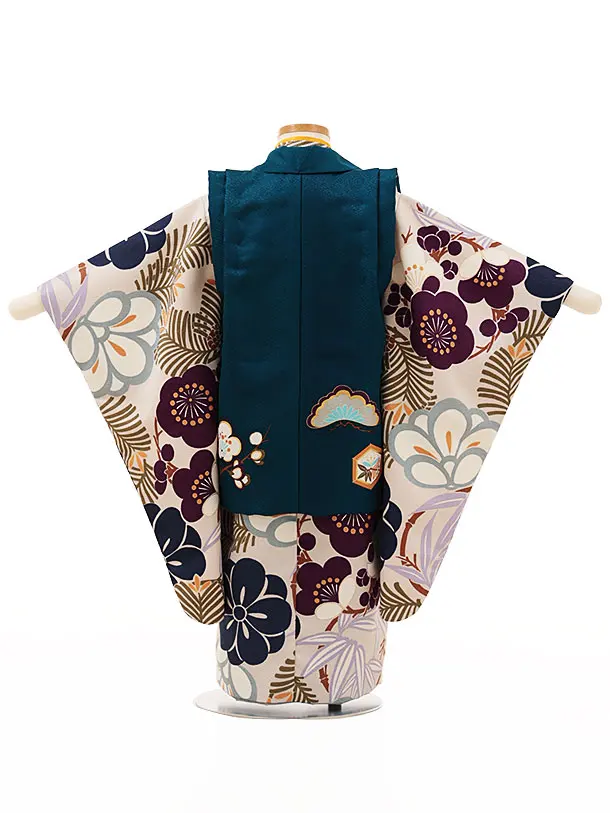 七五三(3歳男児被布)W113ブルーグリーンxニュアンスグレー松竹梅