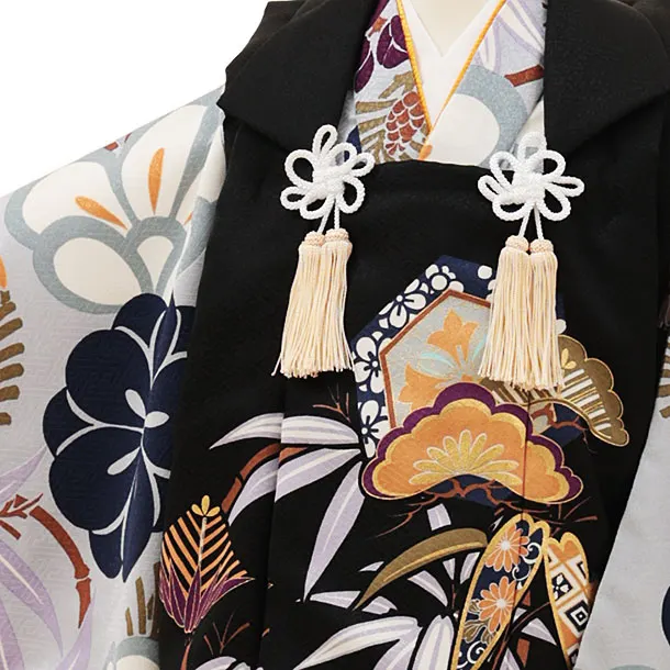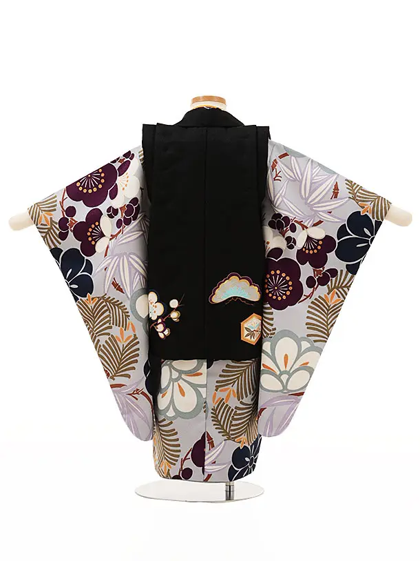 七五三レンタル(3歳男児被布)W115黒xブルーグレー松竹梅