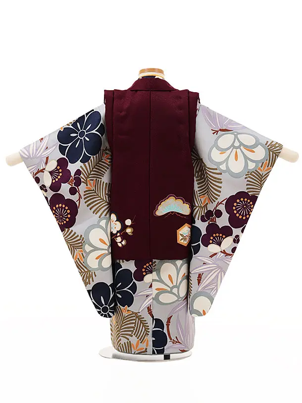 七五三レンタル(3歳男児被布)W117パープルxブルーグレー松竹梅