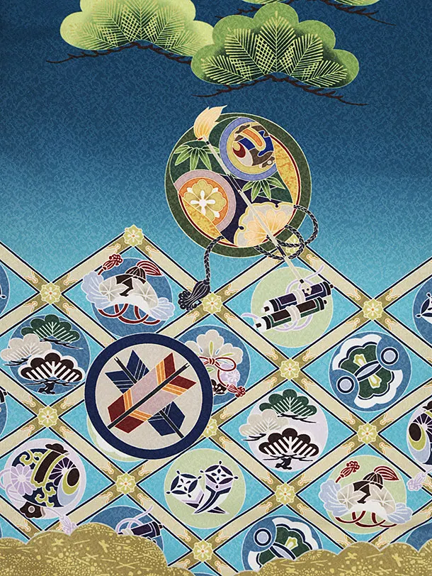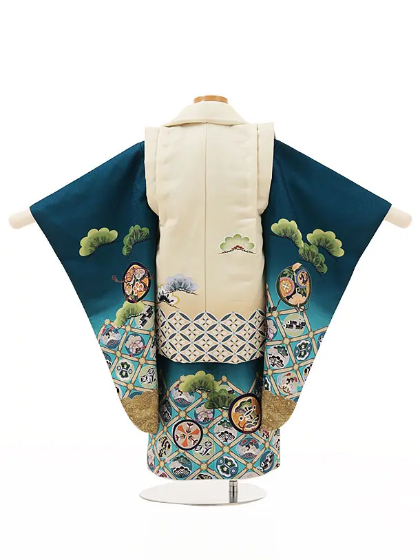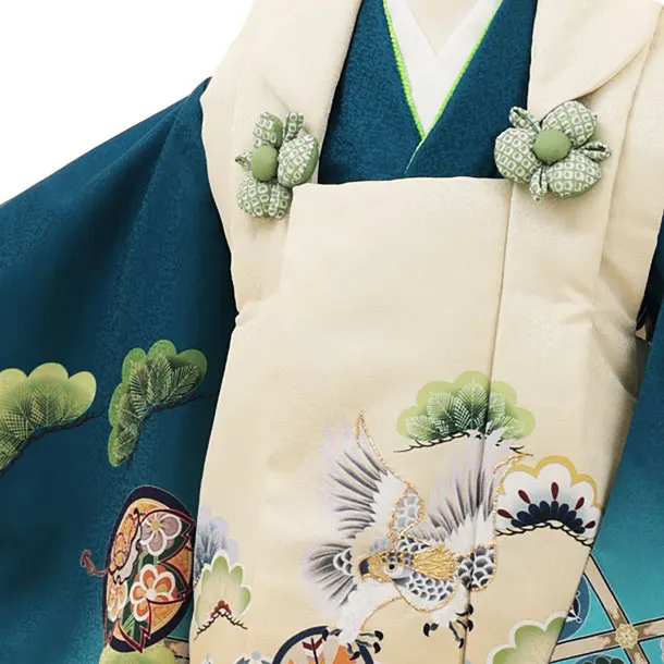 七五三レンタル(3歳男児被布)W131クリームベージュ松鷹xグリーン吉祥文様
