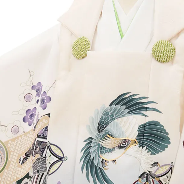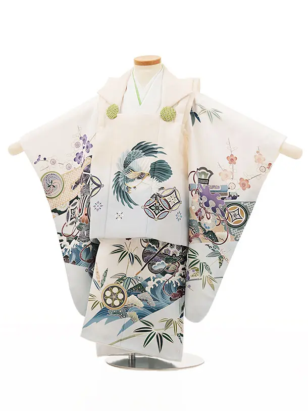 七五三レンタル(3歳男児被布)W132クリーム鷹x白波に吉祥文様