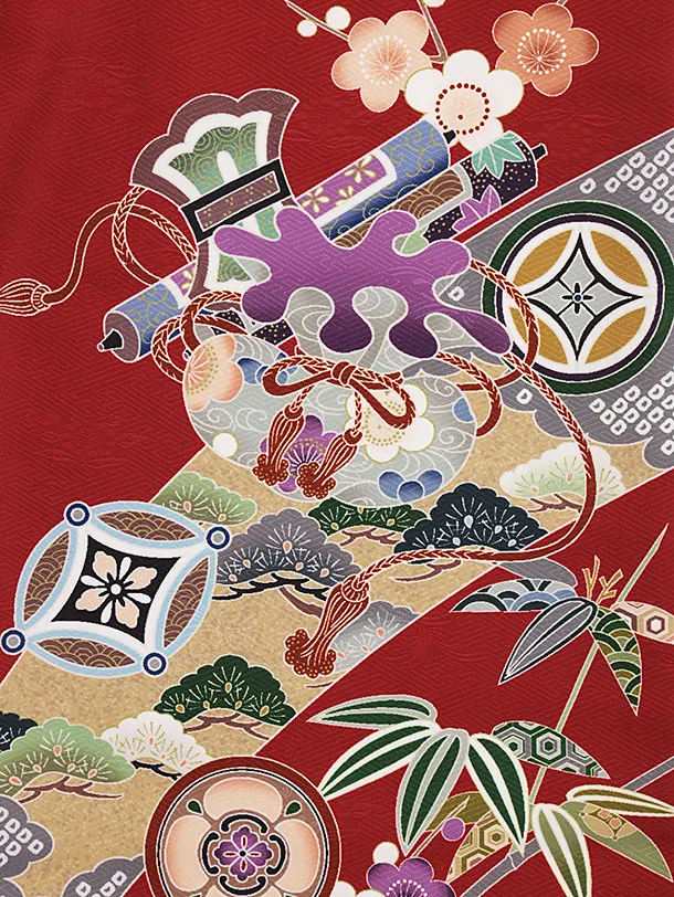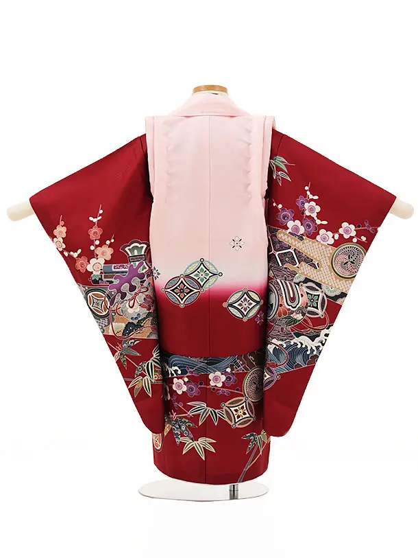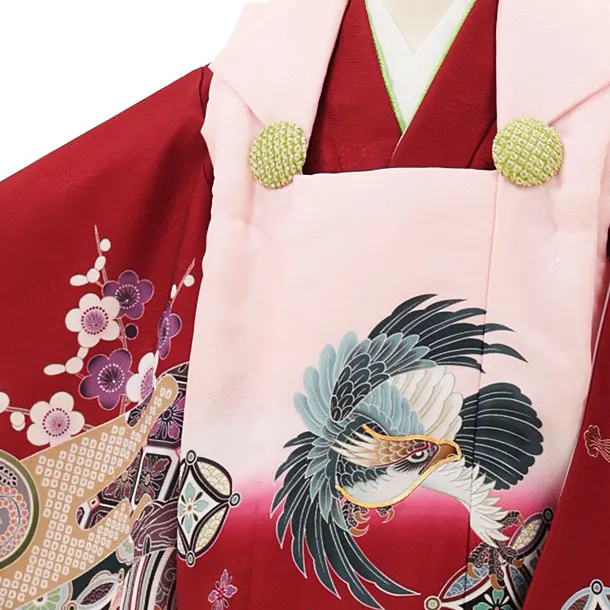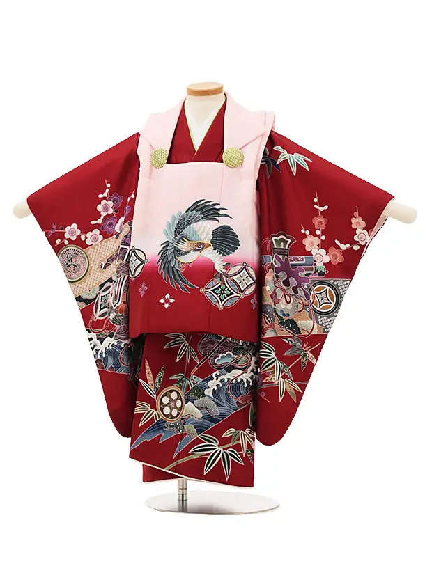 七五三レンタル(2歳男児被布)W140ピンク鷹xエンジ波に吉祥文様