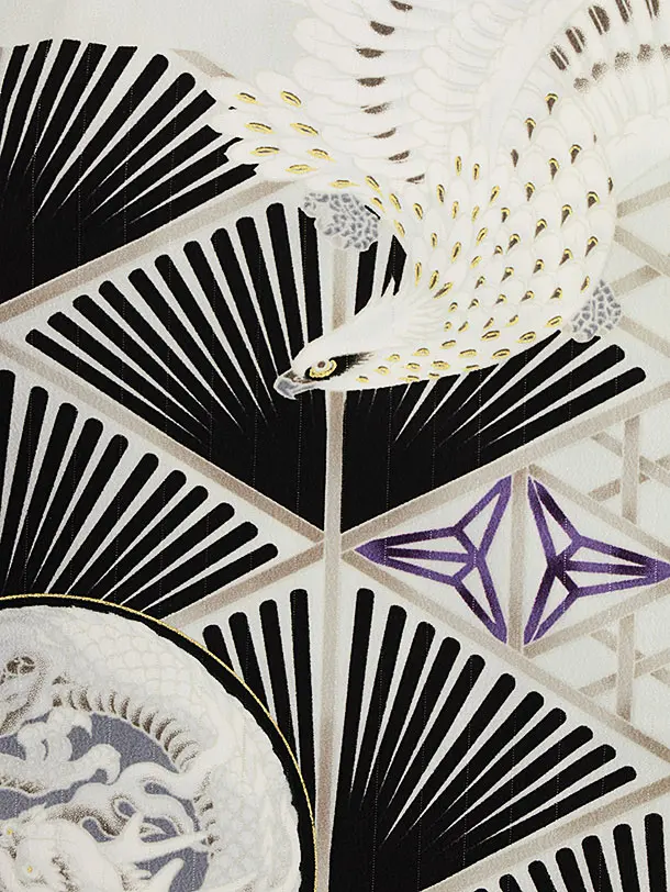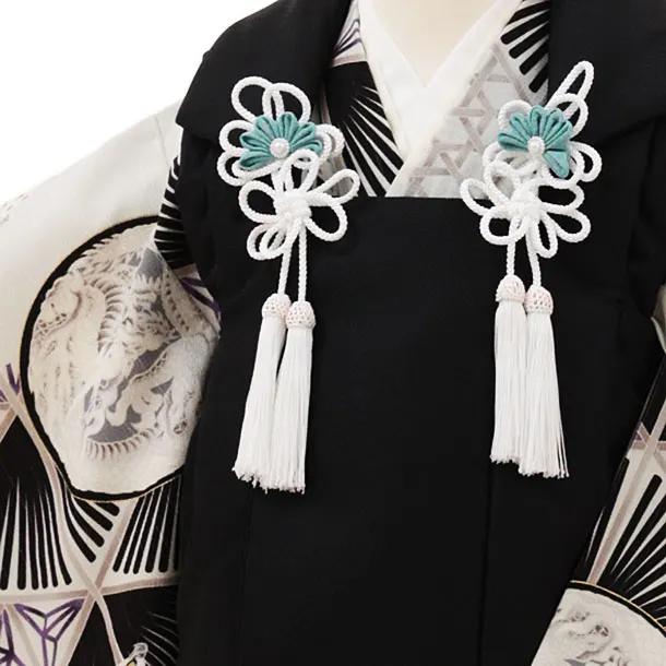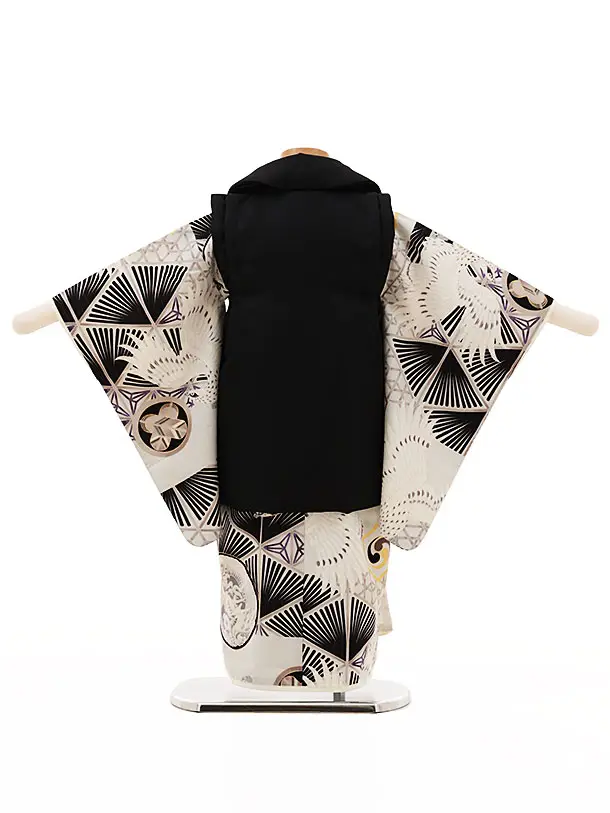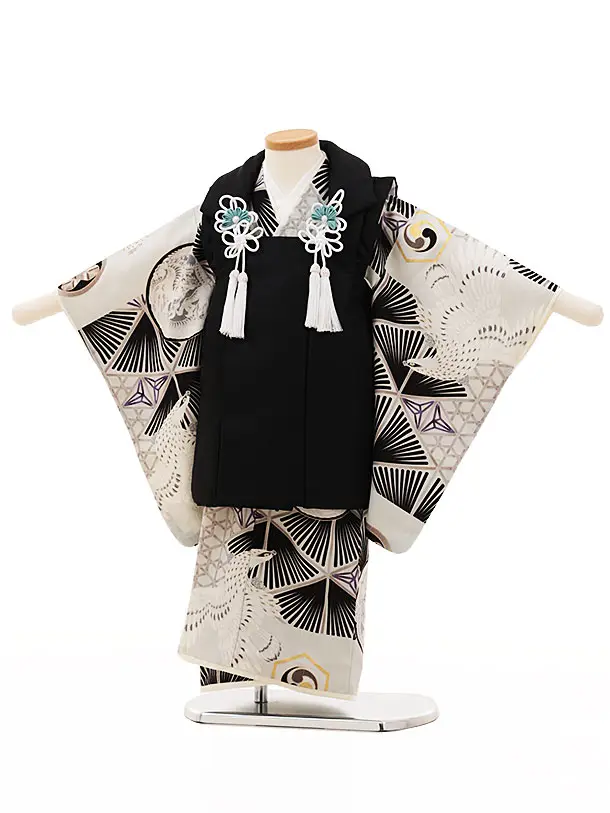 七五三レンタル(3歳男児被布)W145JAPANSTYLE黒xグレー組子紋様鷹