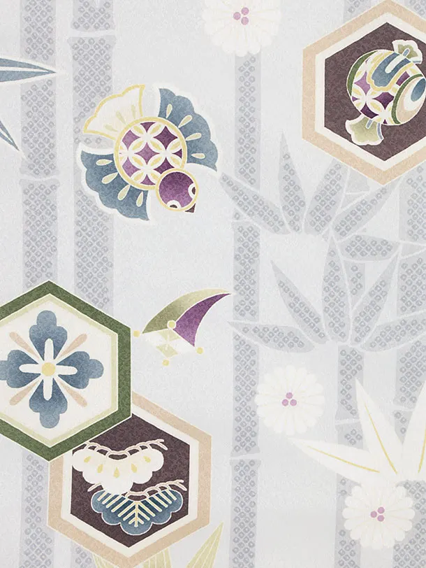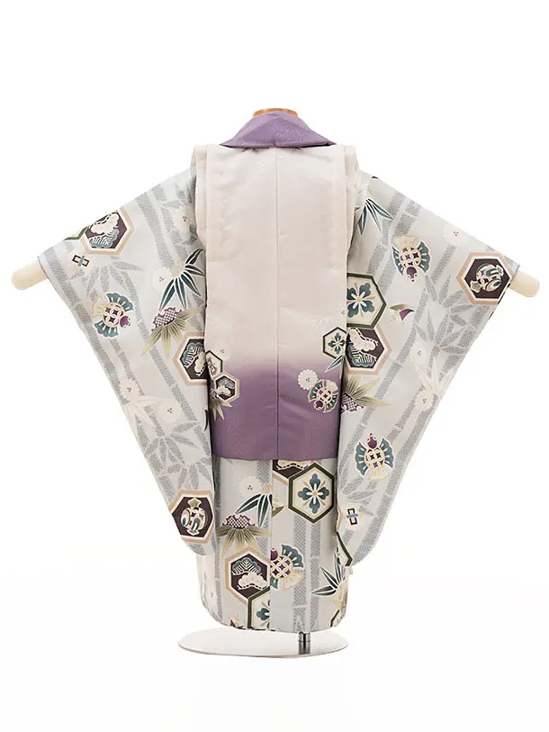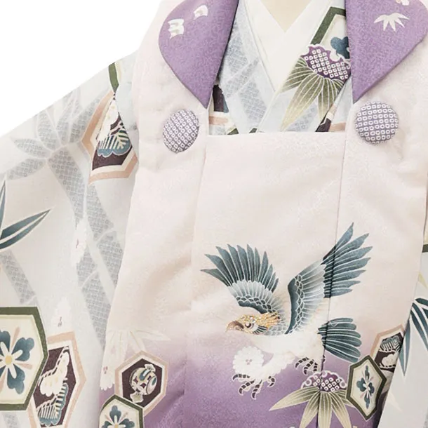 七五三(3歳男児被布)W155淡パープルぼかし鷹×グレー竹亀甲紋