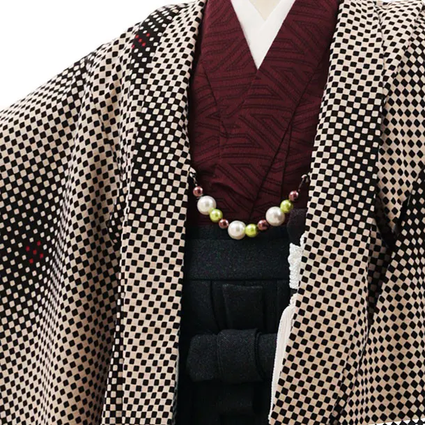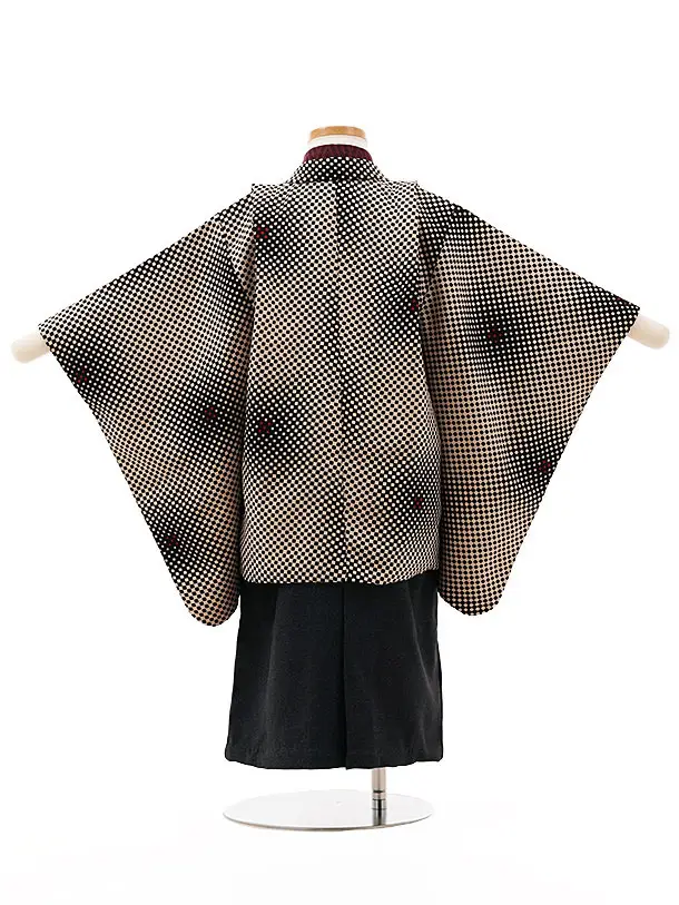 七五三レンタル(3歳男袴)W163 ベージュ黒変わり市松x紺デニム調
