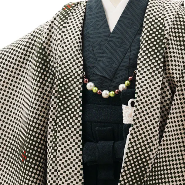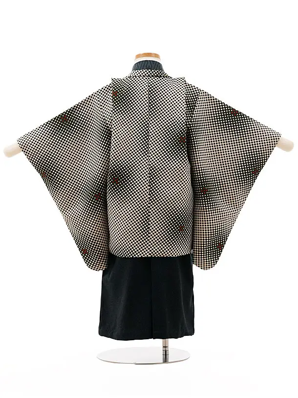 七五三レンタル(3歳男袴)W164 ベージュ緑変わり市松×紺デニム調