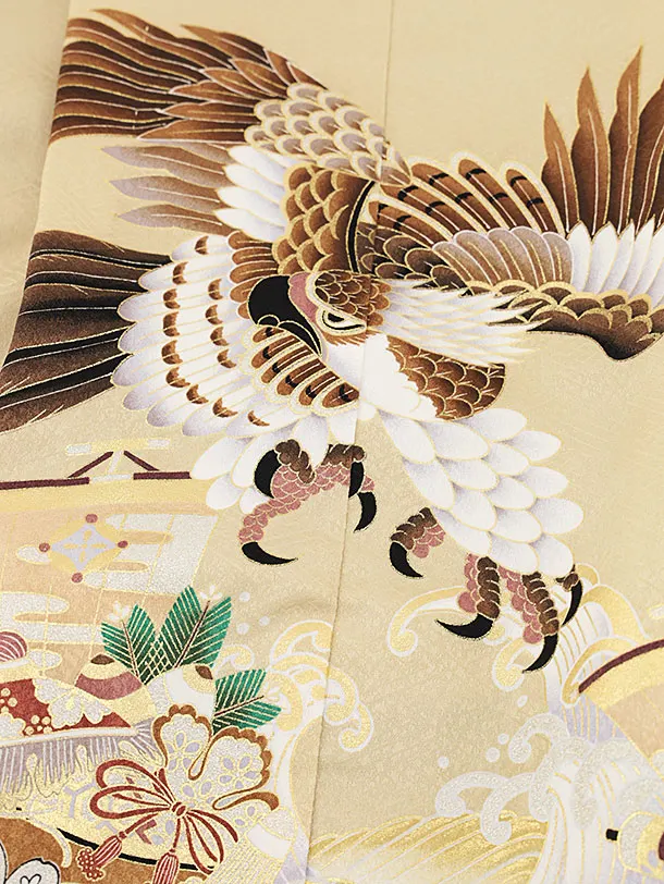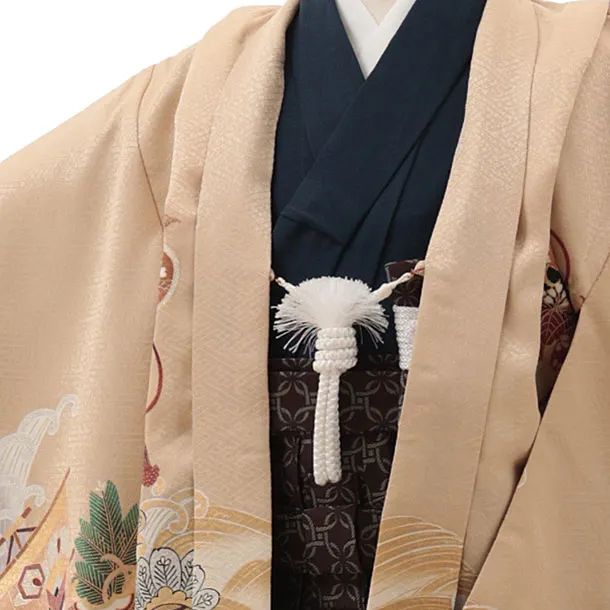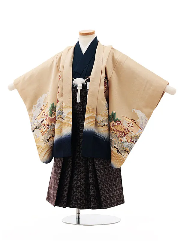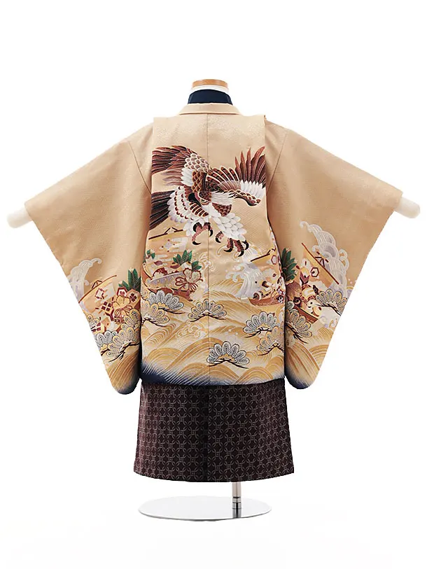 かんたん七五三(3歳男袴)W165 ベージュ波に鷹×茶