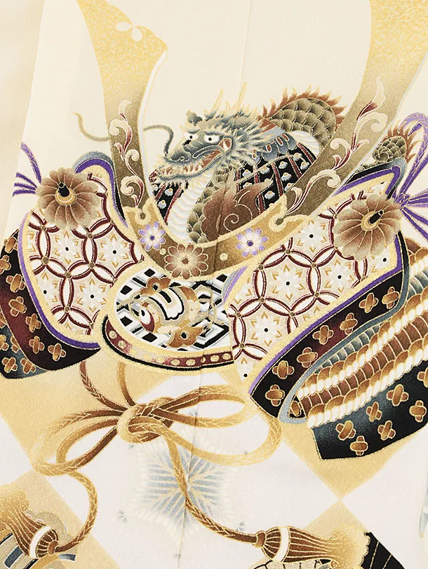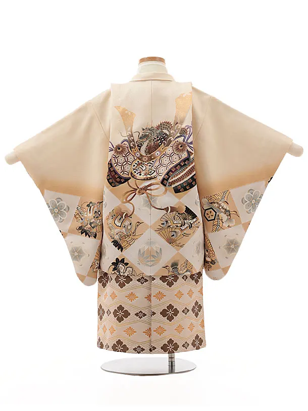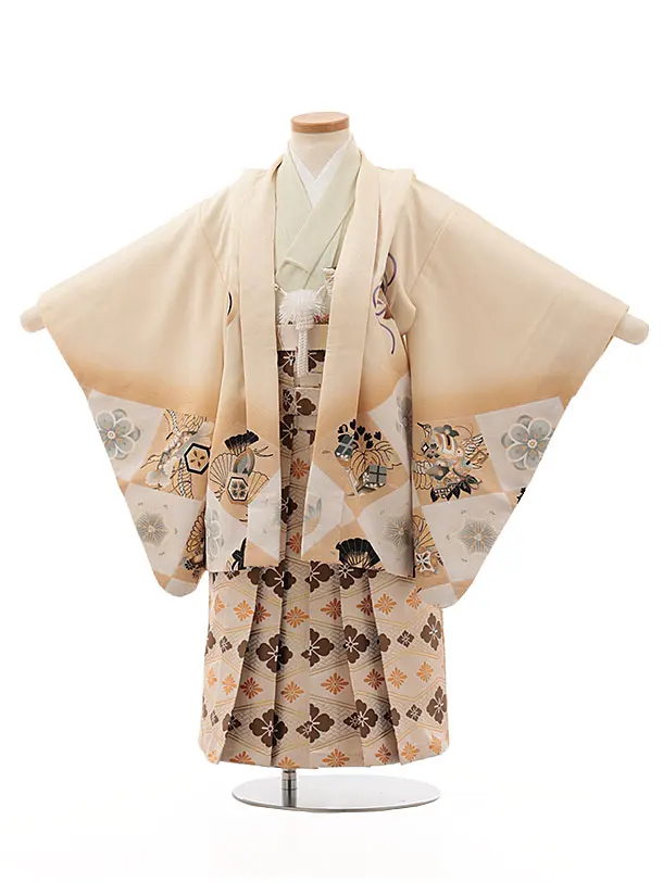 かんたん七五三(3歳男袴)W166 クリームかぶと吉祥文様×ベージュ