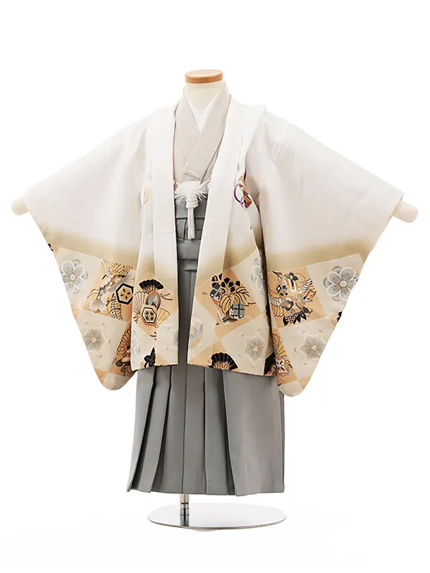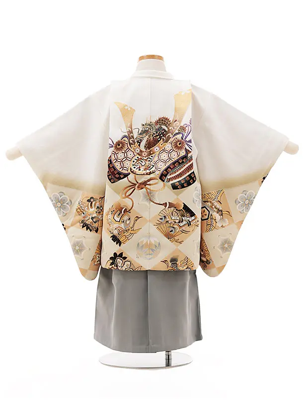 かんたん七五三(3歳男袴)W168 白かぶと吉祥文様×うすグレー