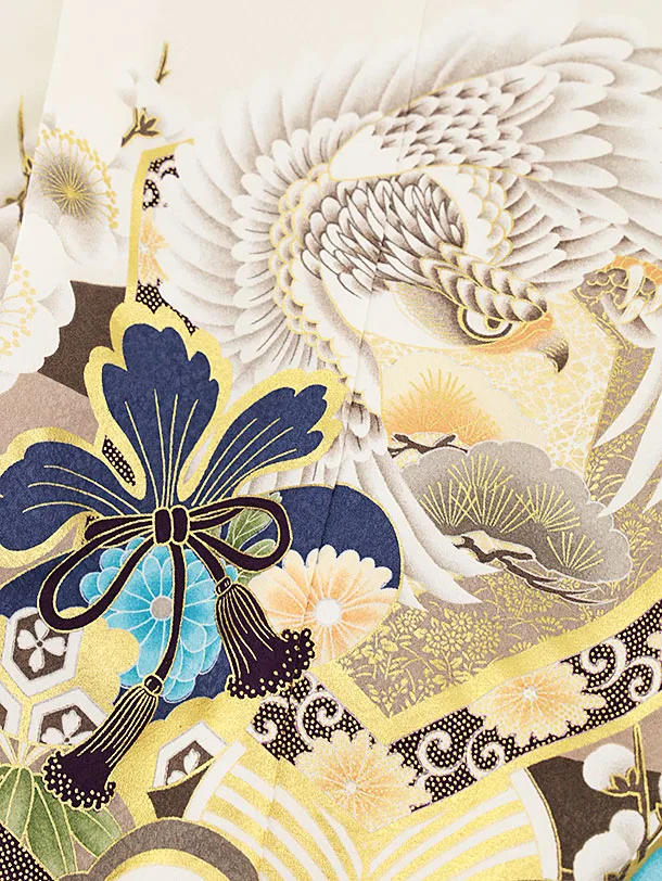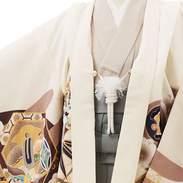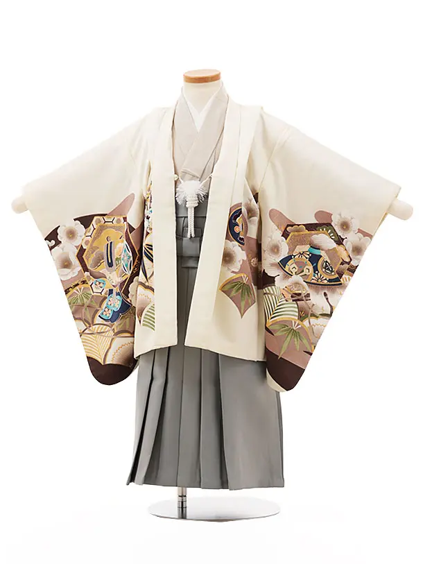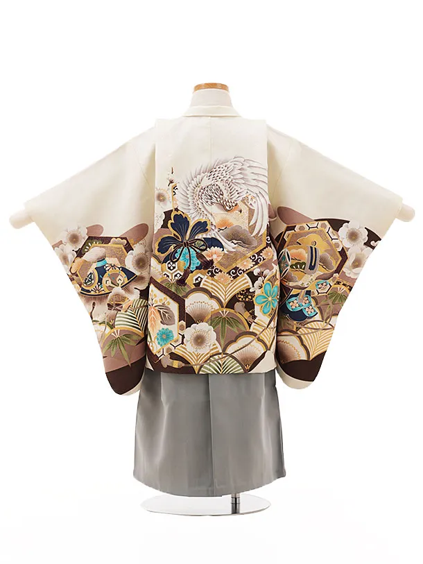 かんたん七五三(3歳男袴)W169 クリーム白鷹吉祥文様×うすグレー
