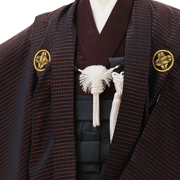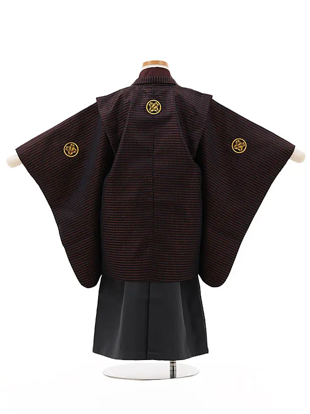 かんたん七五三(3歳男袴)W170 黒茶紋付×グレー