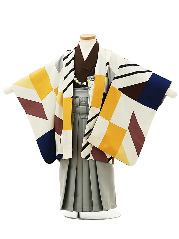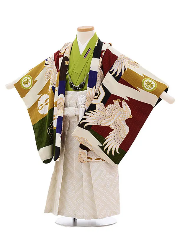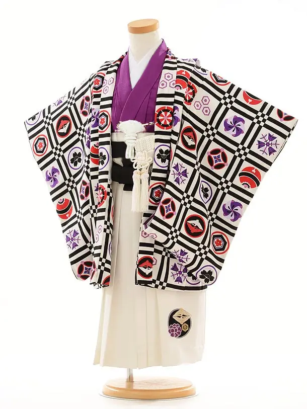かんたん七五三(3歳男袴)W171 白紋付×黒白菱