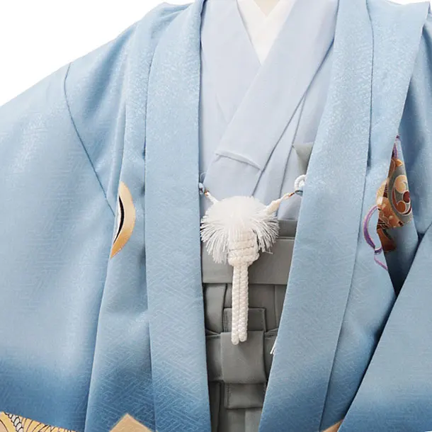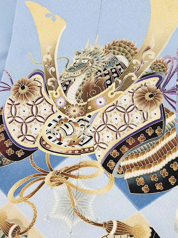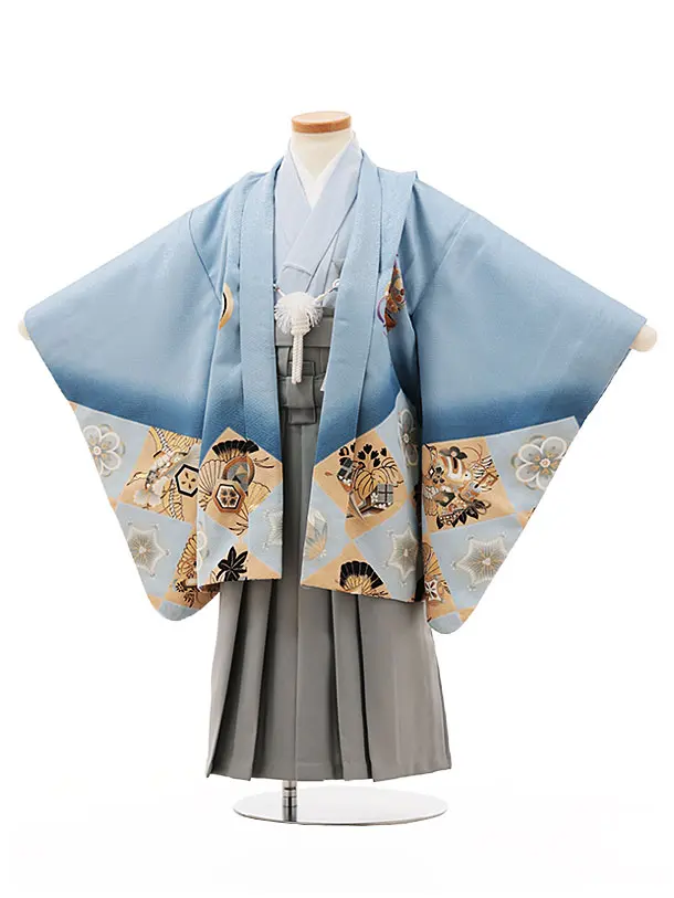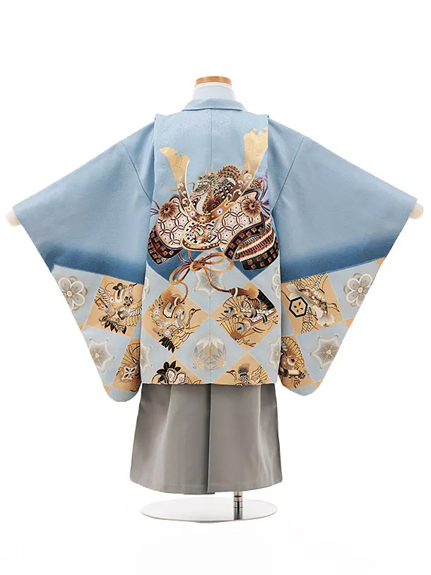 かんたん七五三(4歳男袴)W175 水色かぶと吉祥文様×うすグレー