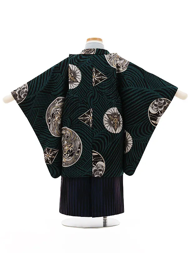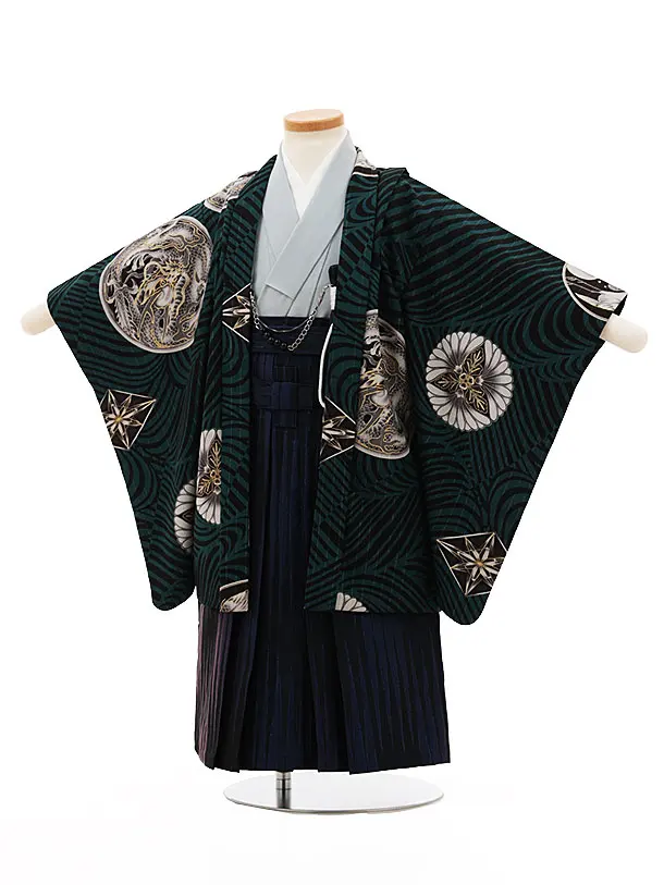 かんたん七五三(3歳男袴)W202 JAPANSTYLE グリーン龍の丸×紫