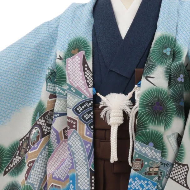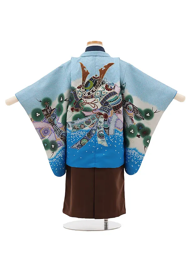 かんたん七五三(3歳男袴)W208 水色束ね熨斗に兜×ブラウン
