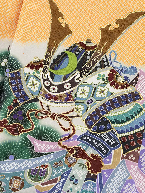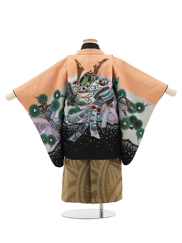 かんたん七五三(3歳男袴)W214 オレンジ束ね熨斗に兜×カーキ