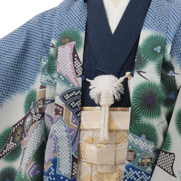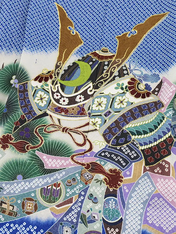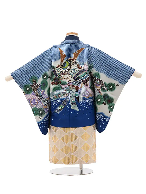 かんたん七五三(3歳男袴)W216 ブルー束ね熨斗に兜×白ゴールド