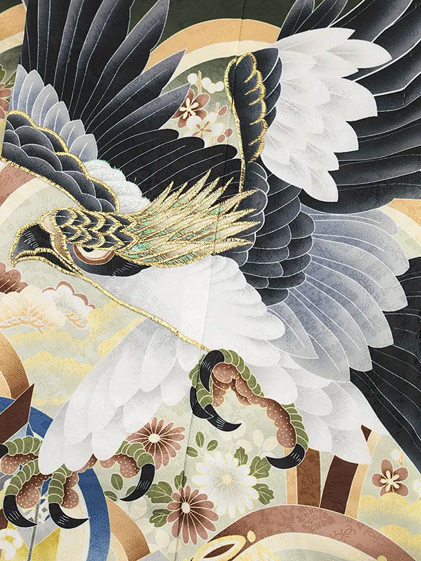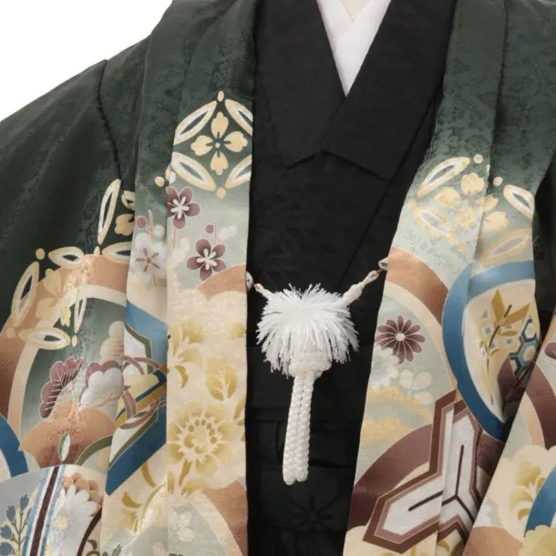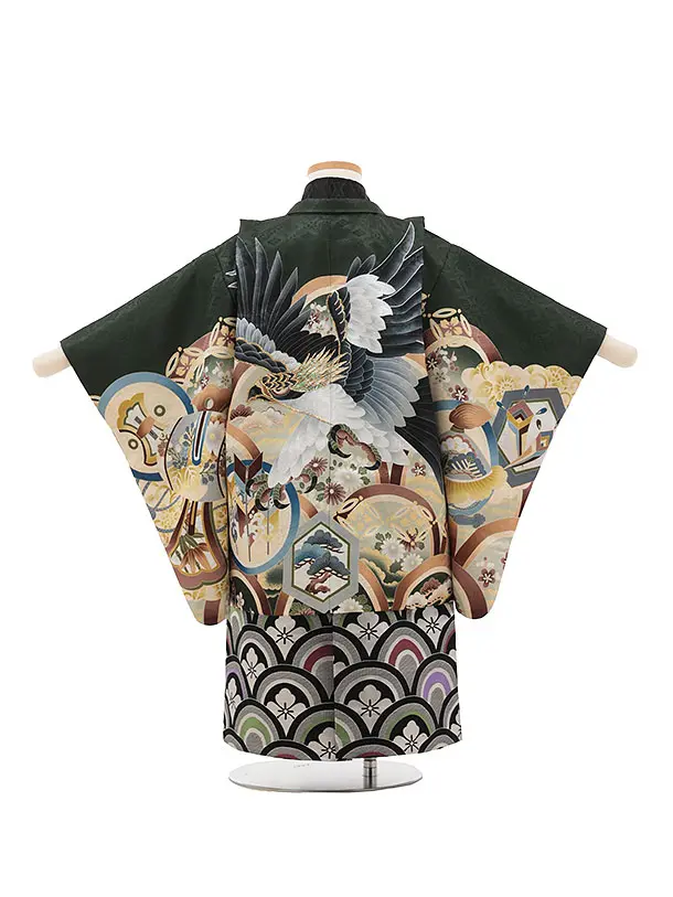 かんたん七五三(3歳男袴)W223 グリーン鷹吉祥文様×黒シルバー