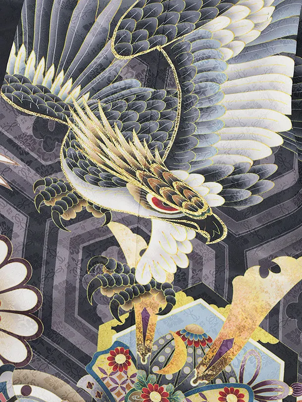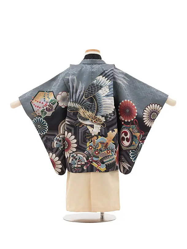 かんたん七五三(3歳男袴)W228 グレーぼかし鷹吉祥文様×クリーム