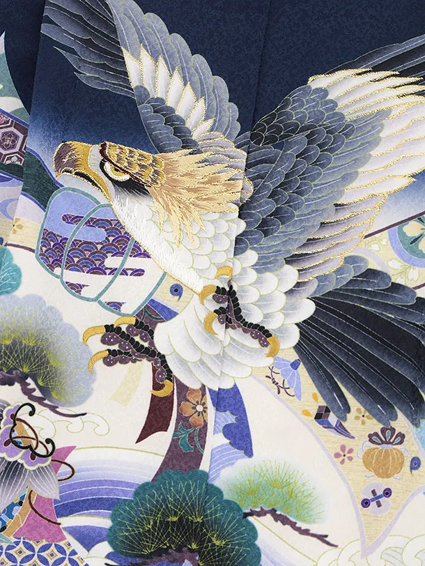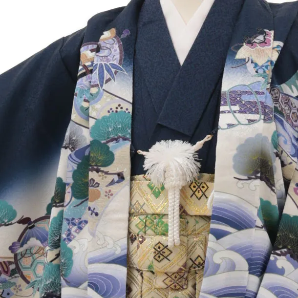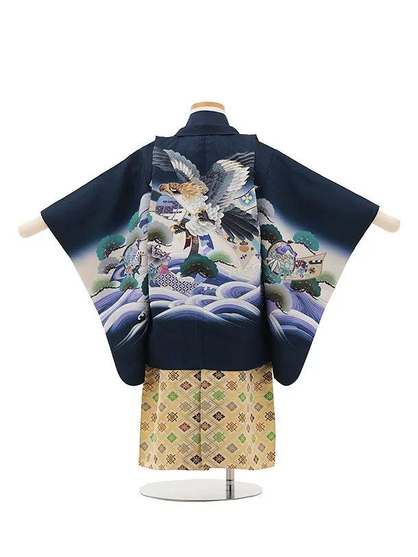 かんたん七五三(3歳男袴)W232 紺波に束ね熨斗鷹×ゴールド菱