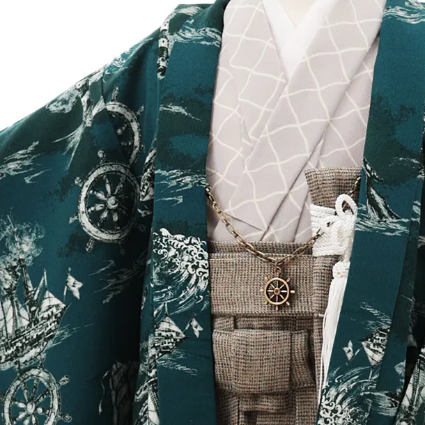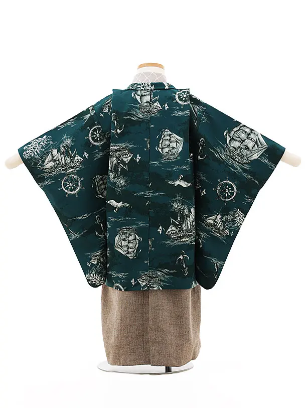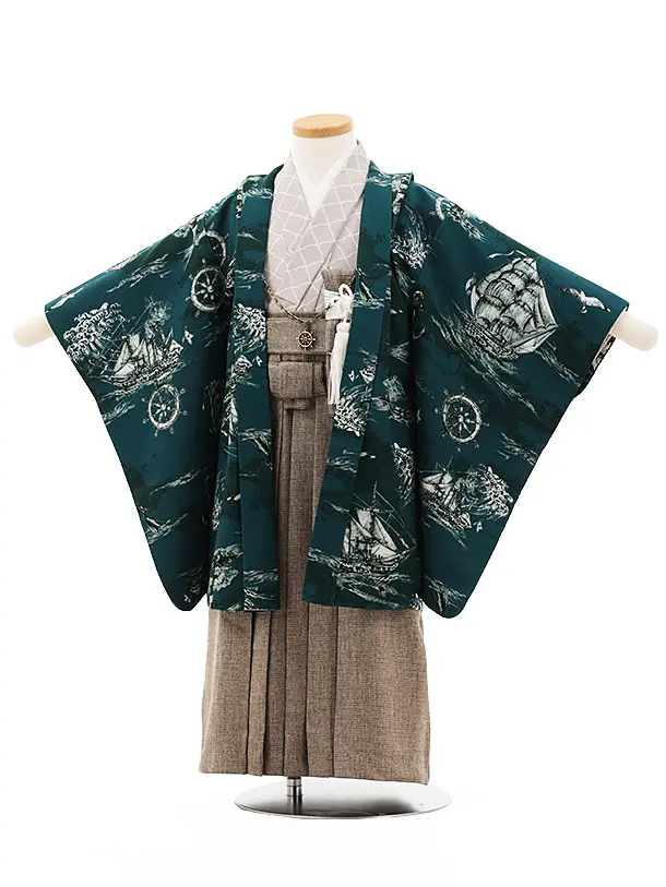 かんたん七五三(3歳男袴)W234 和風館 グリーン大海原×ベージュ