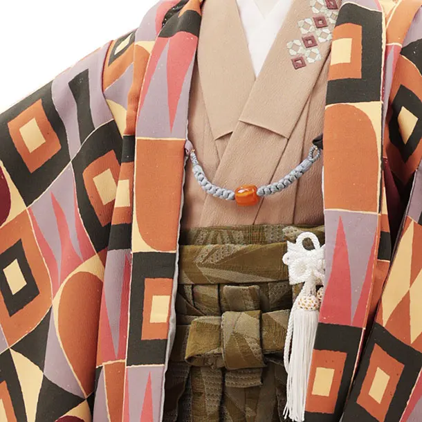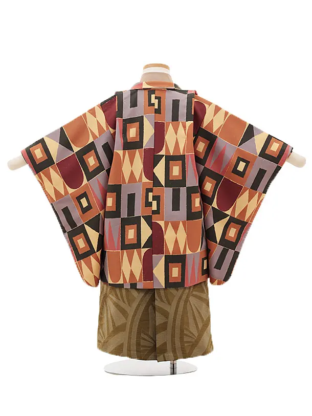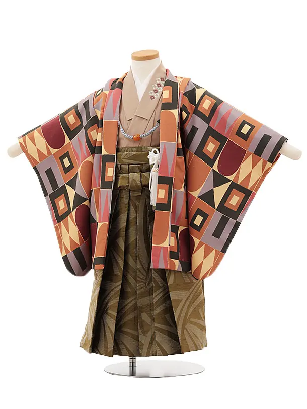 七五三(3.4歳男児袴)W243 花わらべ テラコッタ変わり柄×オリーブグリーン