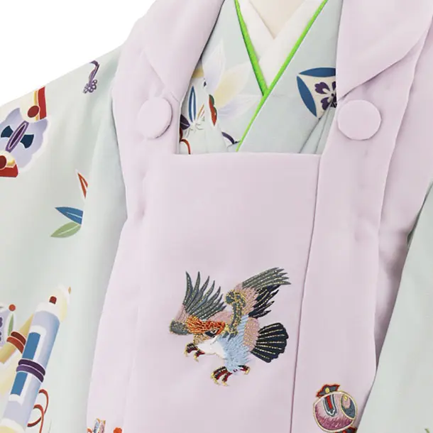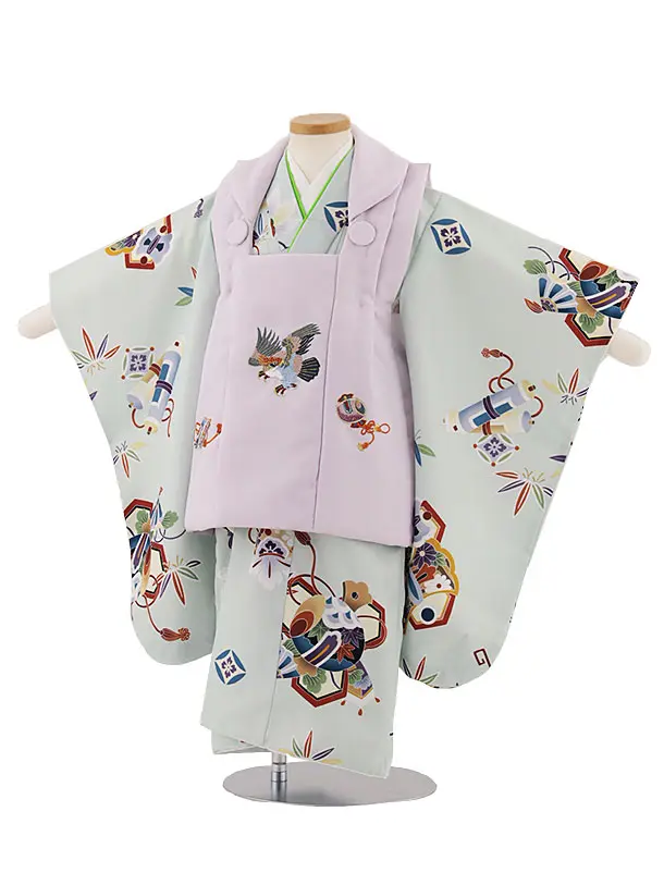 七五三レンタル(3歳男児被布)W255 薄紫刺繍鷹×ペールグリーン波に吉祥文様