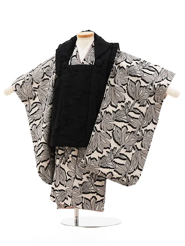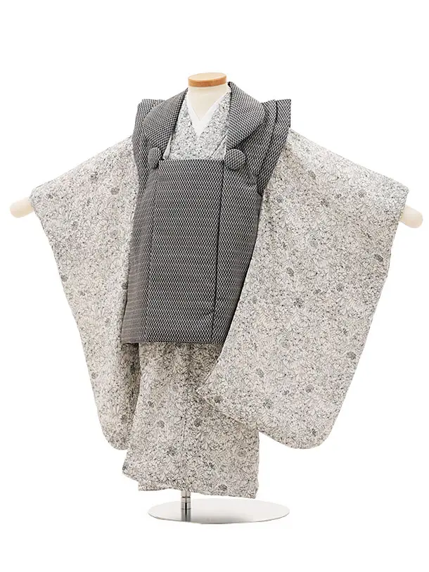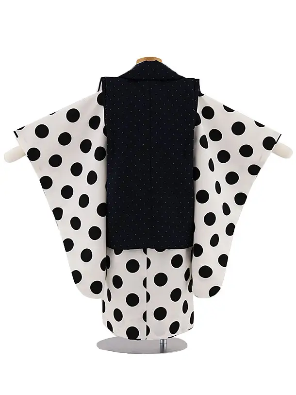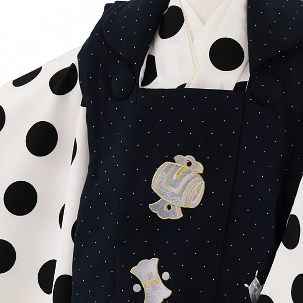 七五三レンタル(3歳男児被布)W256 紺小槌刺繍×白地黒ドット