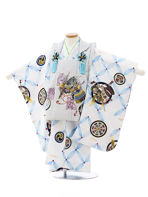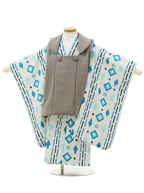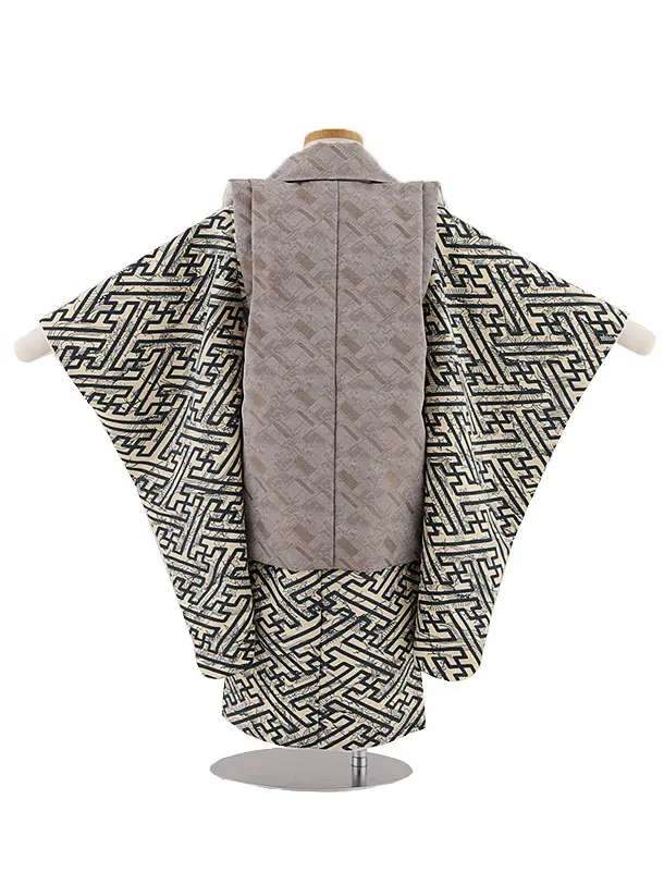 七五三レンタル(3歳男児被布)W258 グレーブラウン×クリーム変わり柄梅