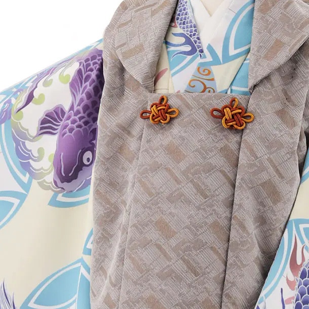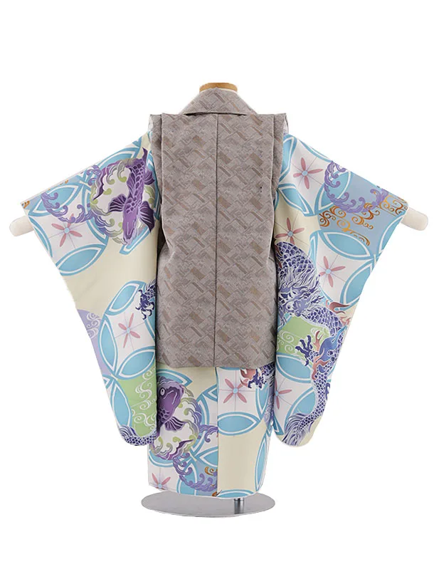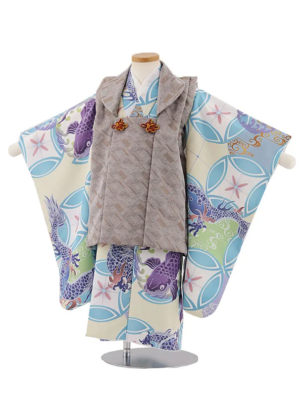 七五三レンタル(3歳男児被布)W263 グレーブラウン×クリーム 波に鯉と龍
