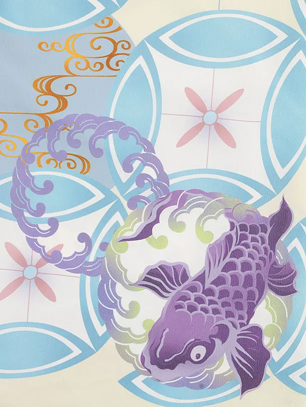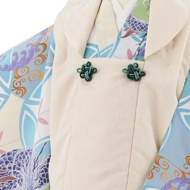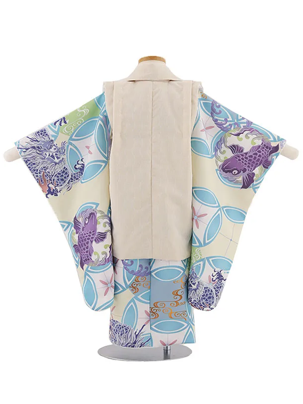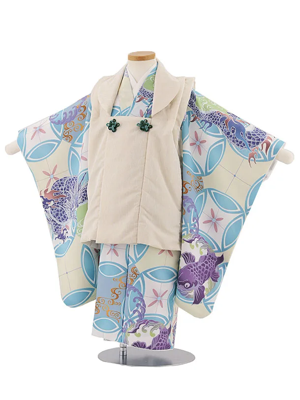 七五三レンタル(3歳男児被布)W266 アイボリーラメ×クリーム 波に鯉と龍