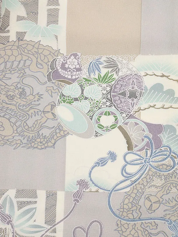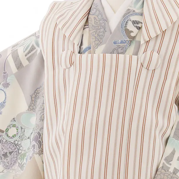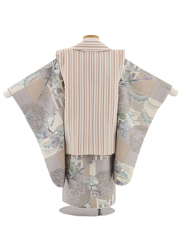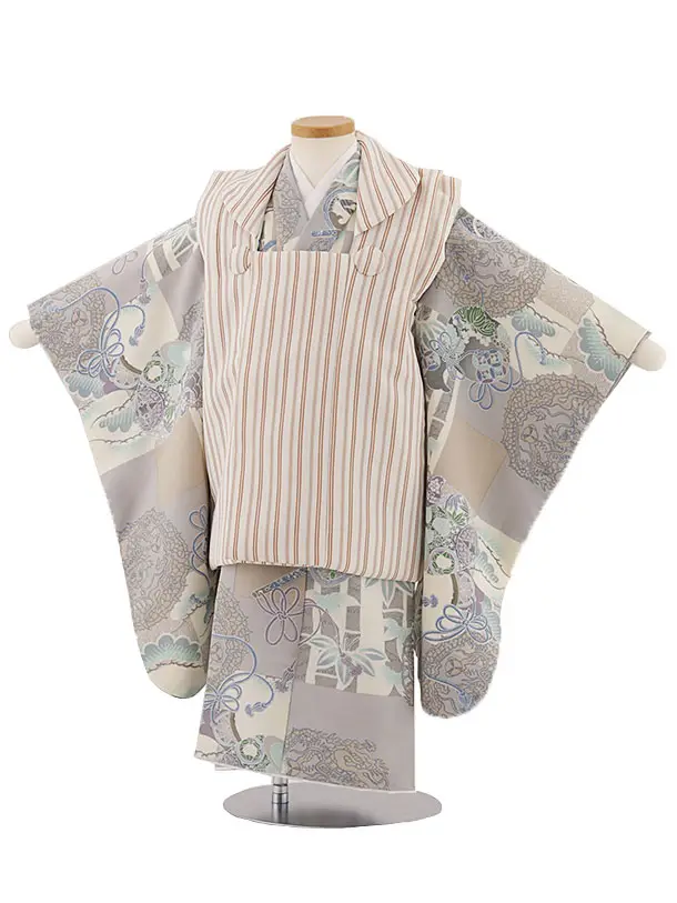 七五三レンタル(3歳男児被布)W273 アイボリーストライプ×グレー軍配に龍