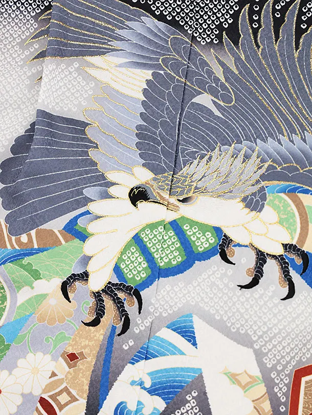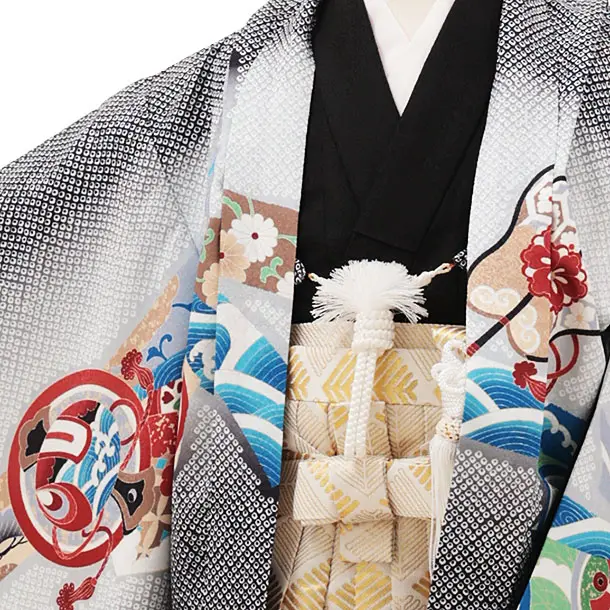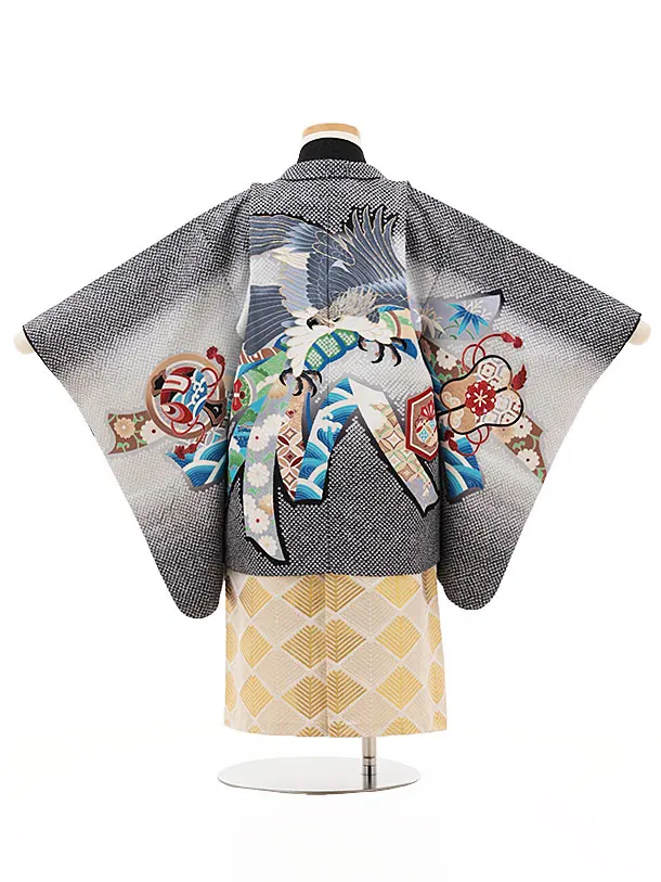 七五三(3.4歳男児袴)W279 黒ぼかし束ね熨斗鷹×白ゴールド