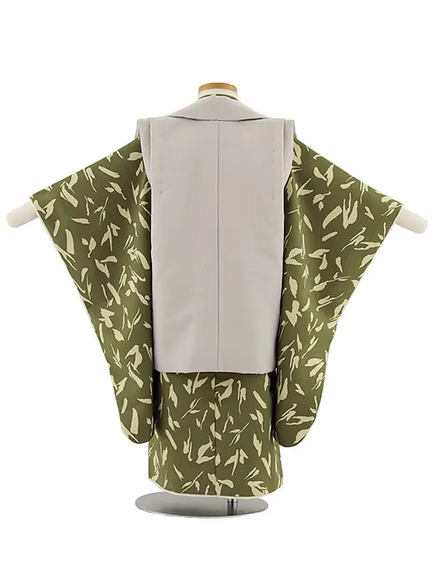七五三レンタル(3歳男児被布)W289 薄グレー×抹茶色変わり柄