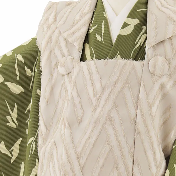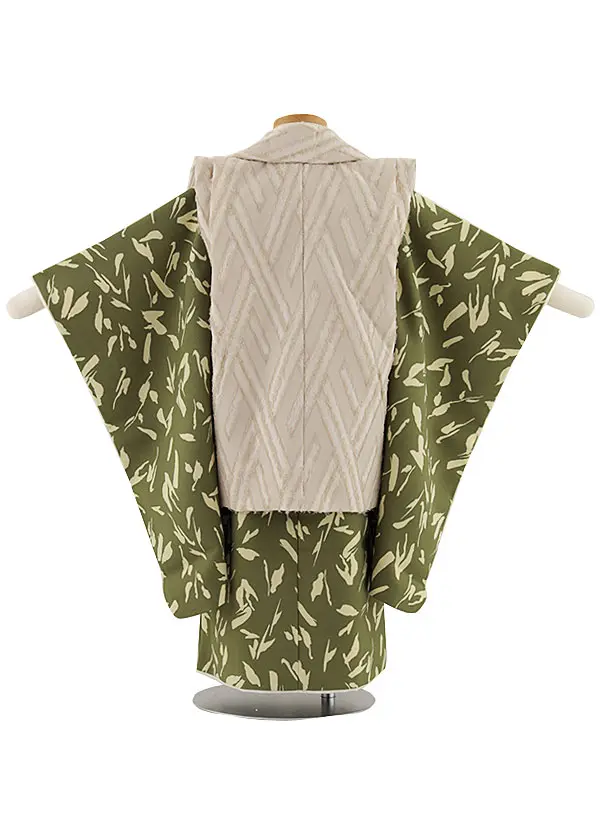 七五三レンタル(3歳男児被布)W290 ベージュ×抹茶色変わり柄