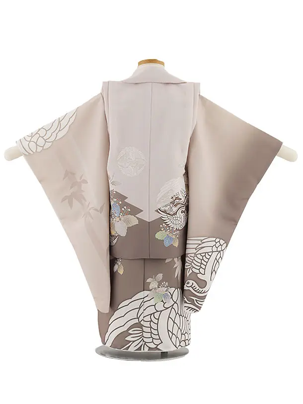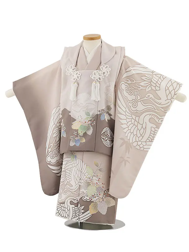 七五三レンタル(3歳男児被布)W291 ベージュ茶向かい鶴