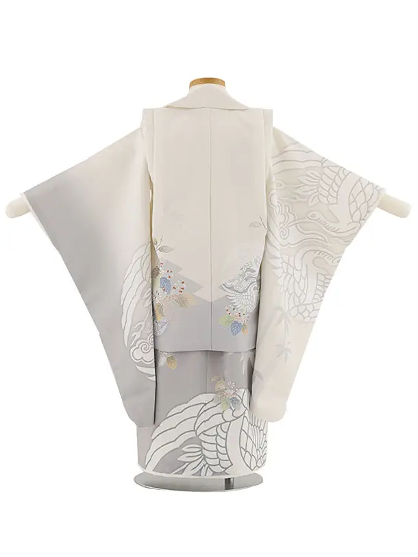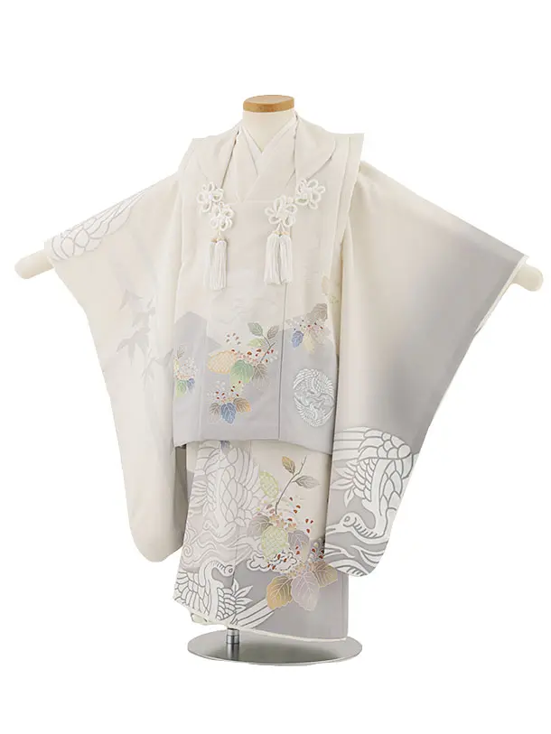 七五三レンタル(3歳男児被布)W294 白グレー向かい鶴