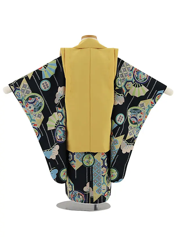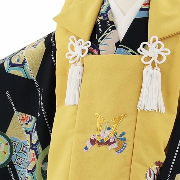 七五三レンタル(3歳男児被布)W299 からし刺繍兜×濃緑矢柄丸紋