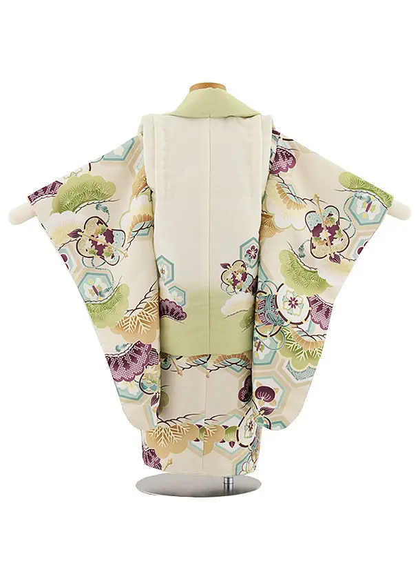 七五三レンタル(3歳男児被布)W324 白うぐいす兜×亀甲紋に松