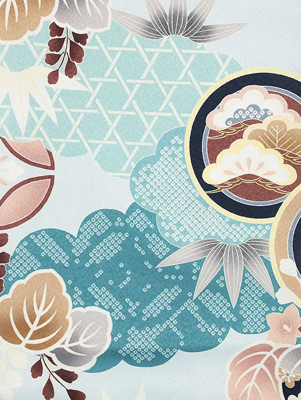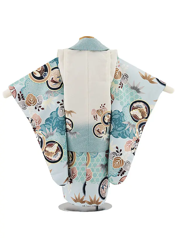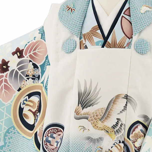 七五三レンタル(3歳男児被布)W326 青緑鷹×雲取りに丸紋